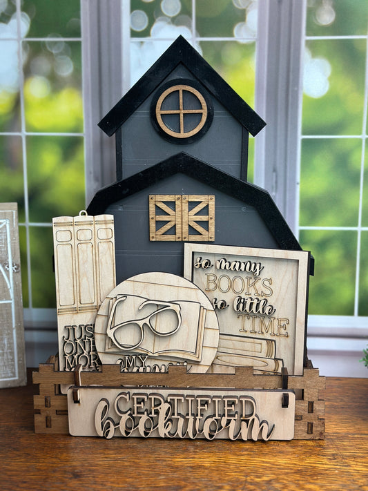Certified Bookworm, Book Lover, Interchangeable Book Themed DIY Craft Kit with Unfinished Birch or Maple Plywood Cutouts
