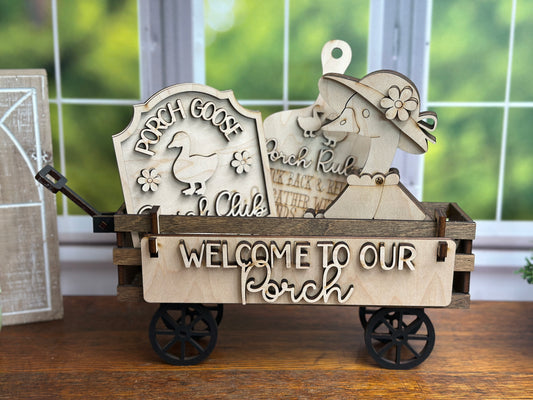 Welcome to our Porch, Porch Goose Social Club DIY Craft Kit – Unpainted Wooden Insert for Wagon, Crate, or Bench
