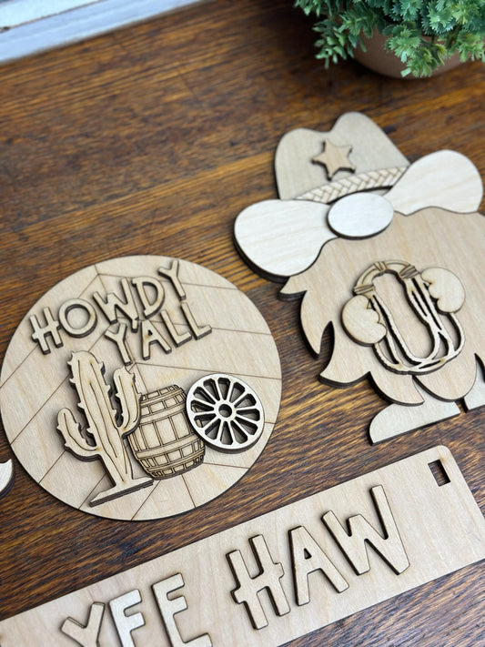 Yee Haw, Interchangeable Western Themed DIY Craft Kit with Unfinished Birch or Maple Plywood Cutouts