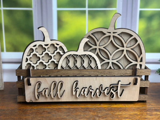 Fall Harvest Pumpkin DIY Craft Kit – Interchangeable Mosaic Wooden Inserts for Crate, Wagon, or Bench Display