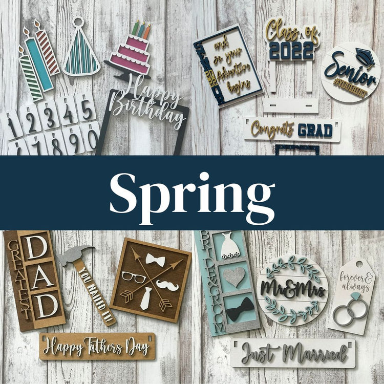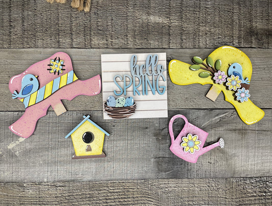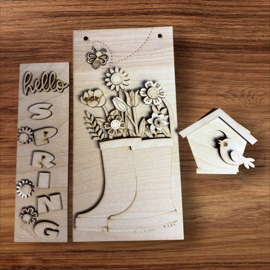 Hello Spring, Spring Insert for Interchangeable Standing Gnome, Interchangeable DIY Craft Kit, Unfinished Birch Plywood Craft Kit