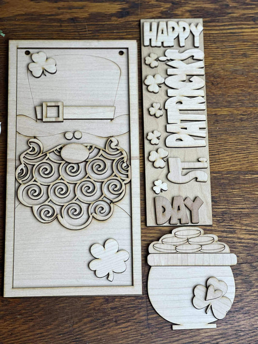 Irish Blessings, St. Patrick's Day Insert for Interchangeable Standing Gnome, Interchangeable DIY Craft Kit, Unfinished Birch Plywood Craft Kit