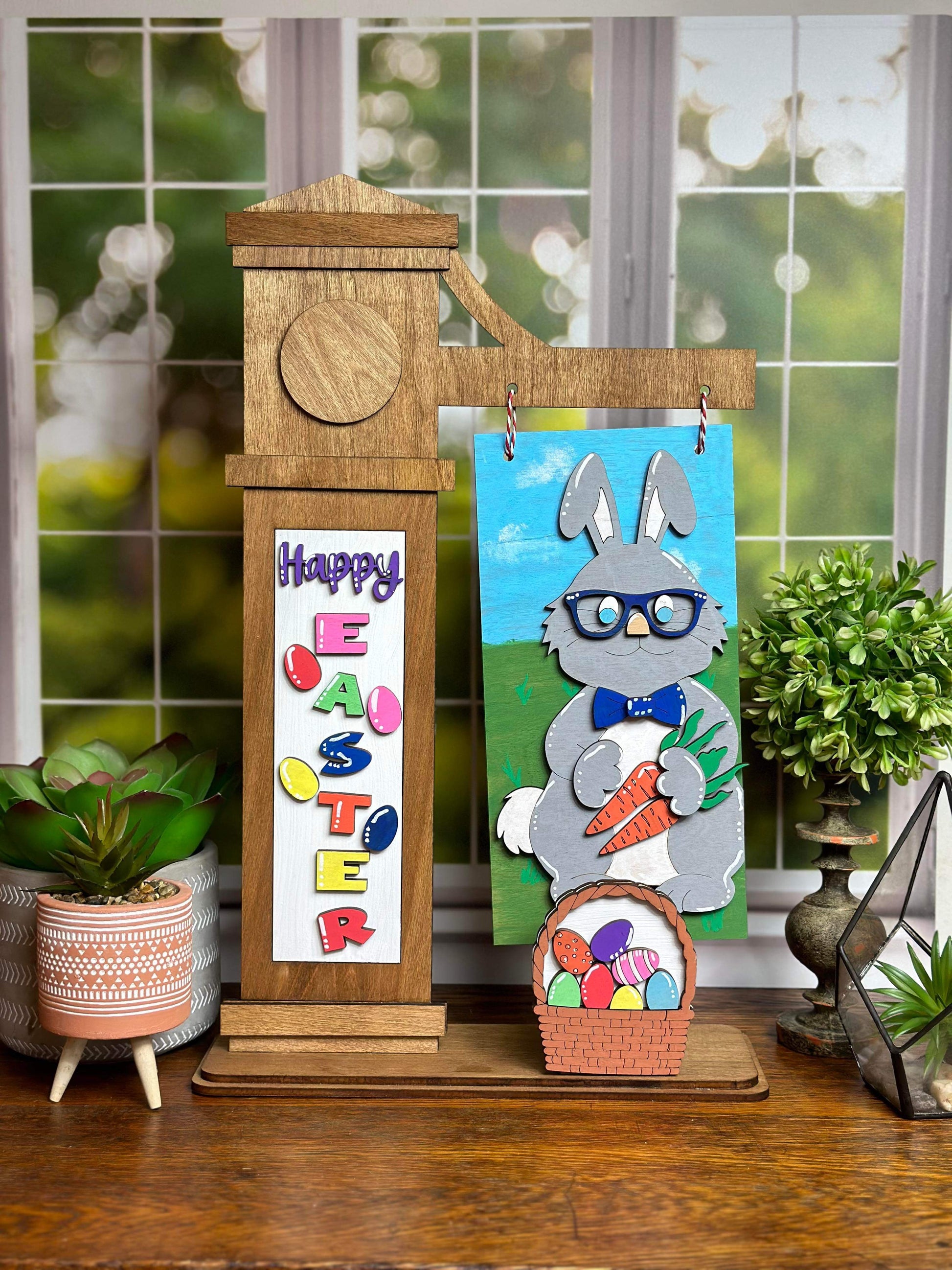 Get in on the Easter fun with Happy Easter! This kit has an adorable Easter bunny design, complete with a bow tie, a basket filled with eggs, and carrots. Great for celebrating Easter or for decorating your family's Easter egg hunt.