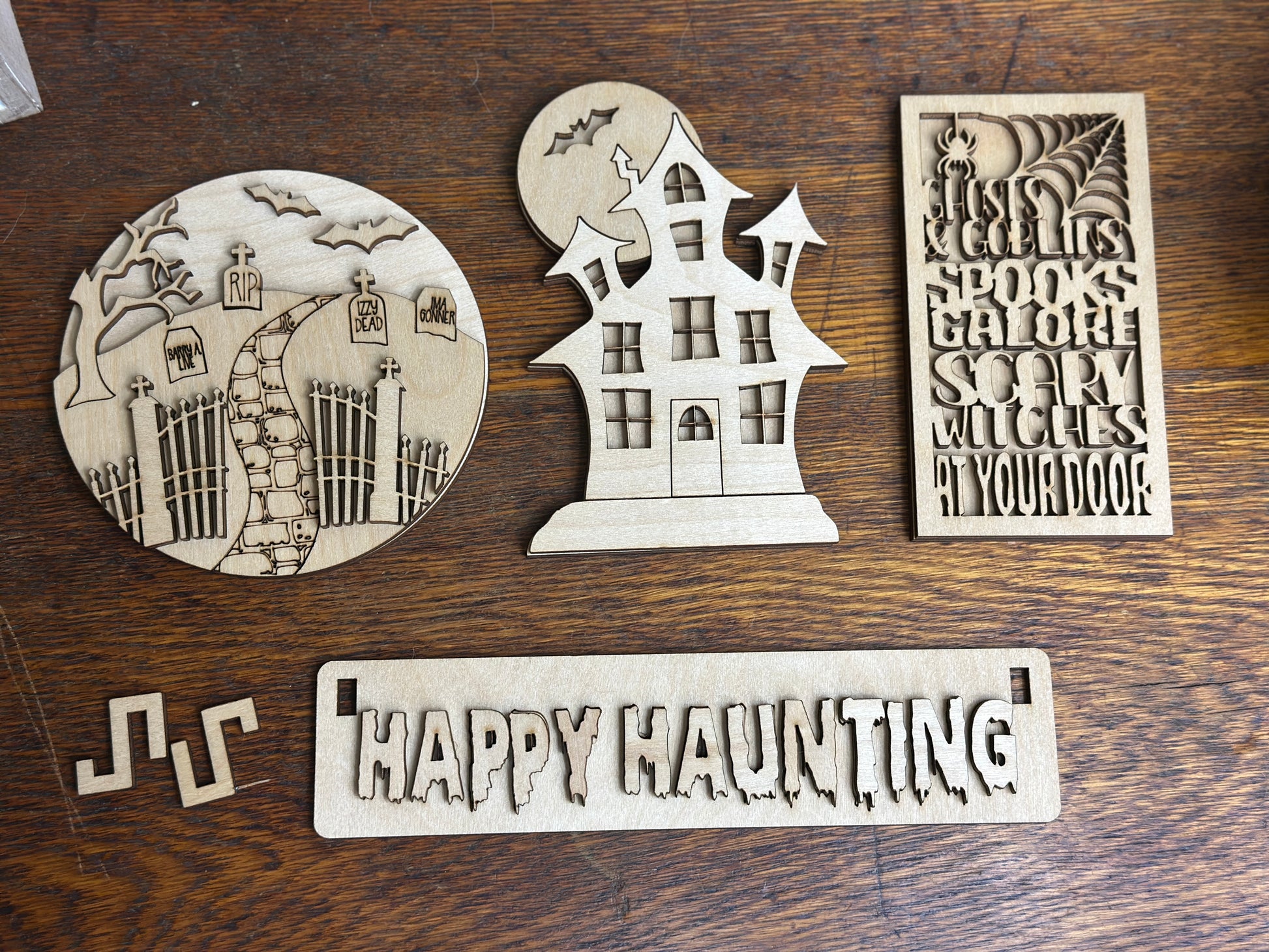 Happy Haunting DIY Craft Kit – Graveyard & Haunted House Interchangeable Halloween Wood Inserts