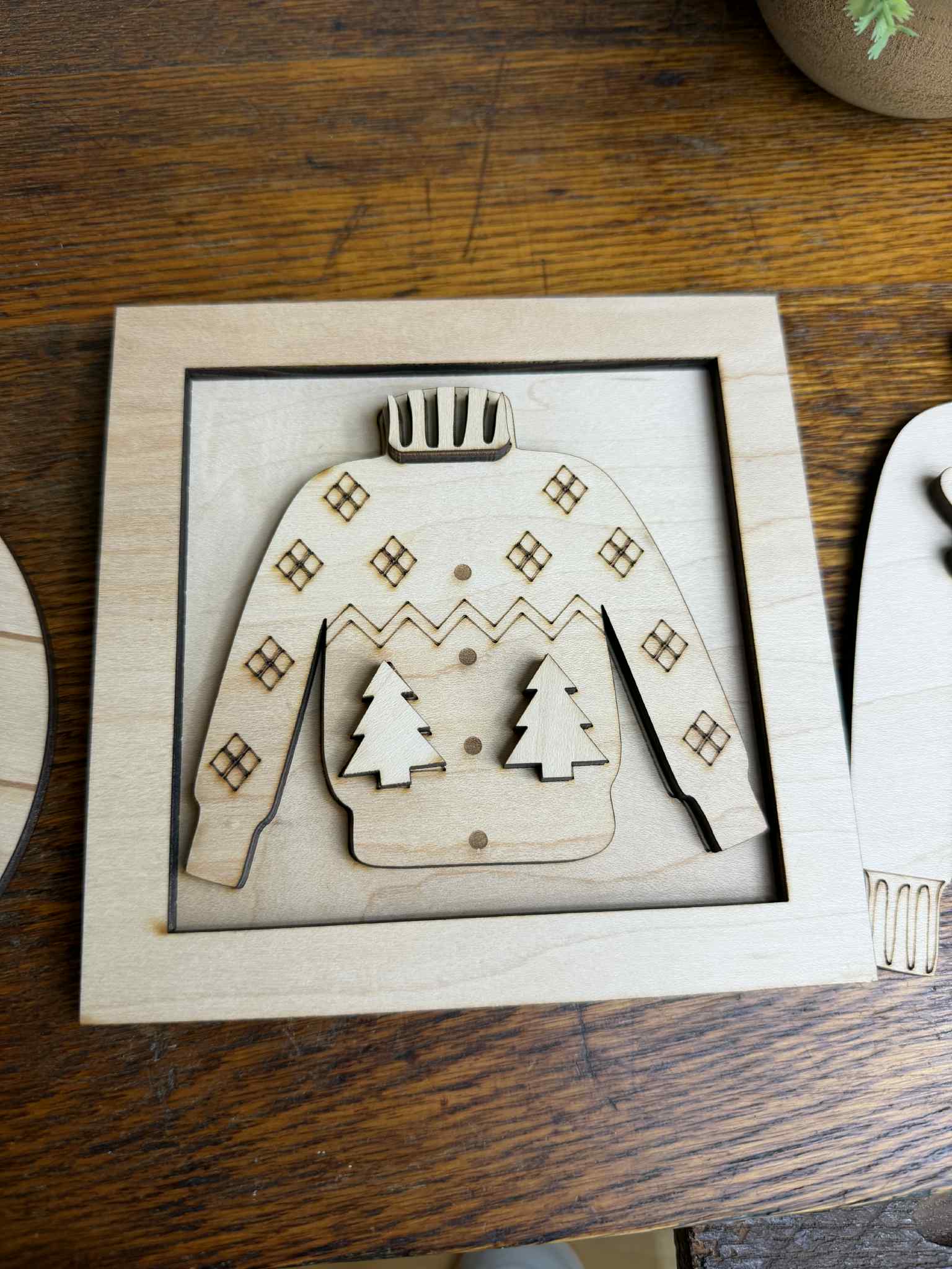 Laser-cut wooden sweater pieces