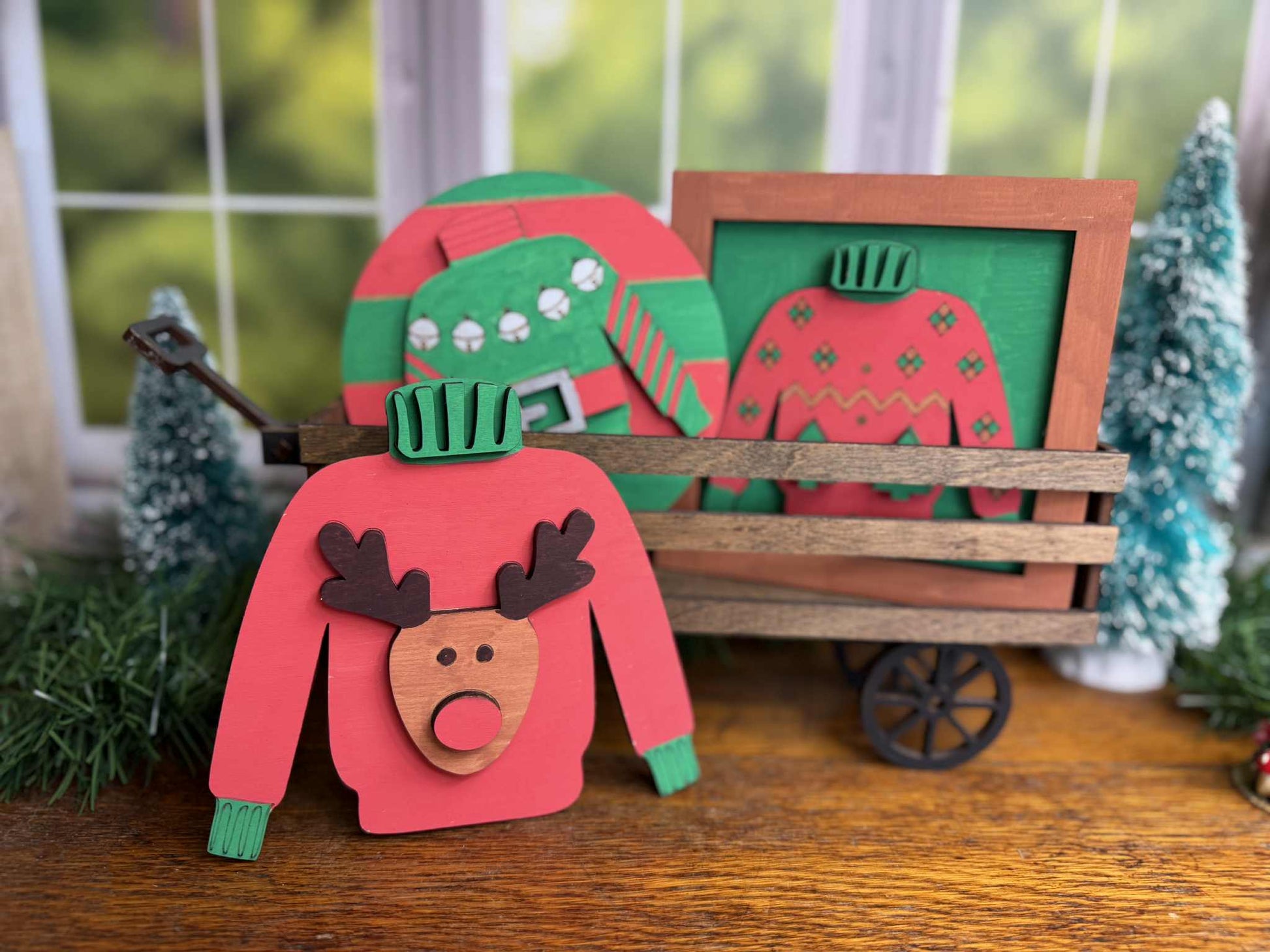 Get ready to spread some holiday cheer with our Tacky Christmas Sweater DIY Craft Kit! This festive kit features three cozy wooden sweater designs — Santa’s belt, a winter tree sweater, and a reindeer — all laser-cut in our home shop. Perfect for painting, gluing, and decorating your way, these make joyful additions to your Christmas shelf décor, holiday craft nights, or DIY gift ideas.